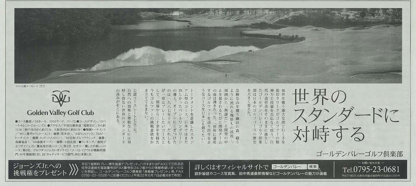 ゴールデンバレーゴルフ倶楽部が「ゴルフが深まる、ゴルフが広がる、日本をまわろう」の「世界的なコース設計家ロバート・トレント・ジョーンズJr.が設計したゴルファーを魅了するコース」特集に紹介されました。