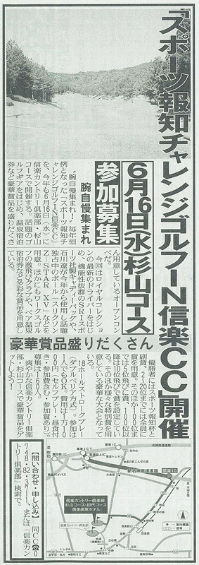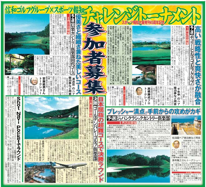 「コース拝見」にてスポーツ報知×信和ゴルフグループ チャレンジトーナメントの案内が掲載されました。