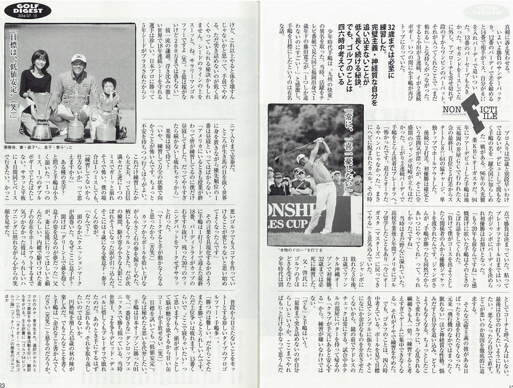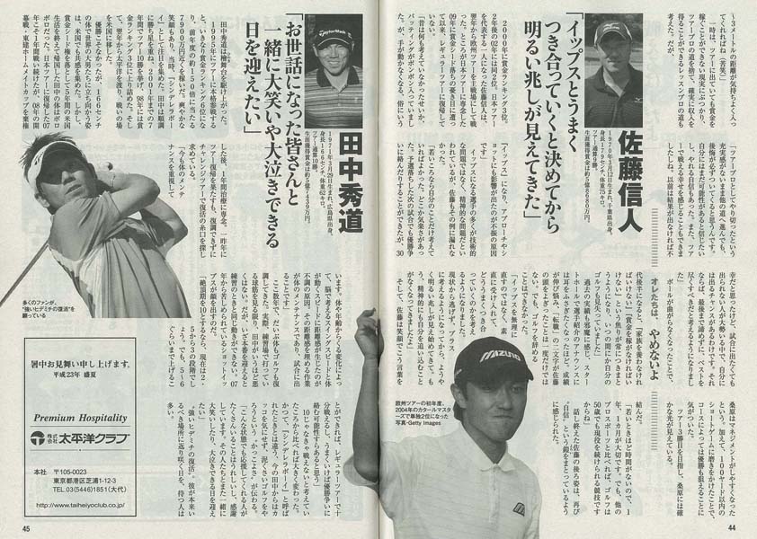 カラー2ページ「プロゴルファーに聞く。ピンチはチャンス!?」にて当グループ所属・田中秀道プロが特集されました。